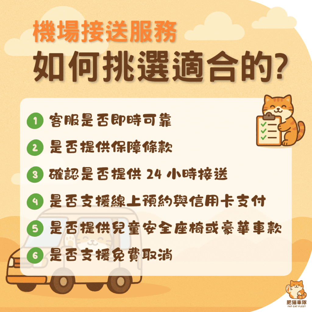 肥貓車隊 | 約 NT$200 | 可加購,適合親子或長者接機需求 |